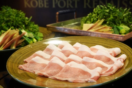 豚バームクーヘン豚は、バームクーヘンの端材などを飼料に混ぜて育てられた豚肉のブランド「藏尾ポーク」の通称です。見事な霜降りが入り、見た目にも美しく柔らかさが特徴です。