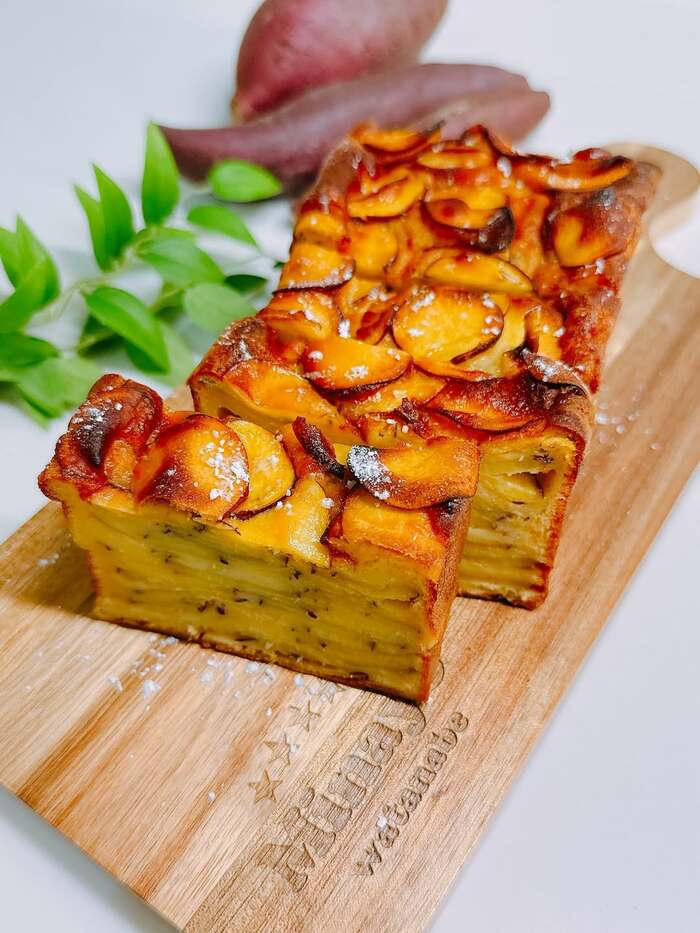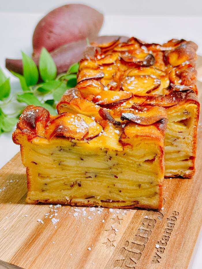 長方形の型に入れて焼き上げれば、“さつまいものガトーインビジブル”が完成!