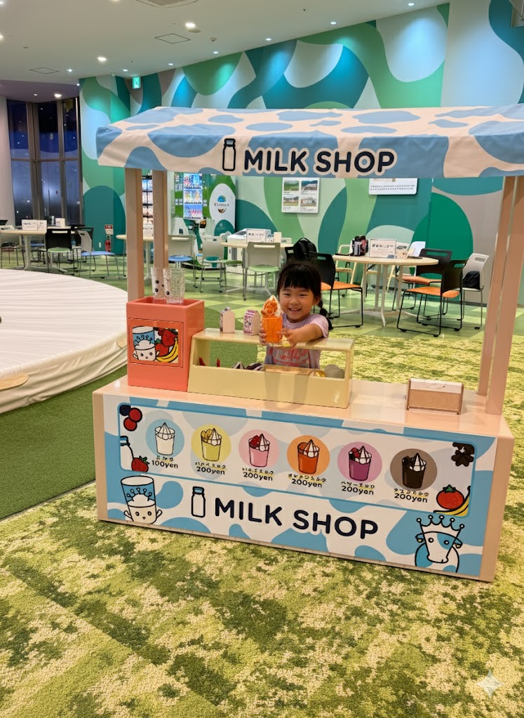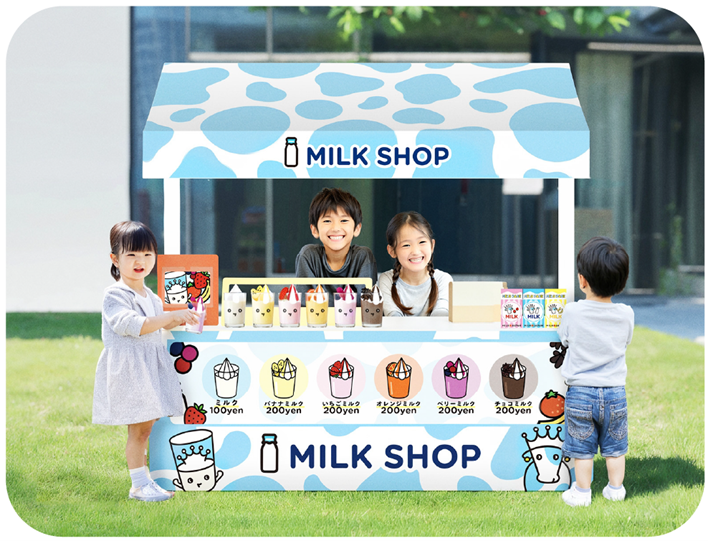 2025年10月に「ちきゅうのにわ 羽生店(埼玉県)」で実施した第1弾は、期間中に約8,700名のお客さまにご来場いただく盛況となりました。来場者アンケートでは、ご参加いただいた保護者の83.3%が「牛乳や酪農への関心が高まった」と回答し、また子どもたちが最も楽しんだコンテンツとして、「なりきり屋台ごっこ MILK SHOP」が1位に選ばれました。