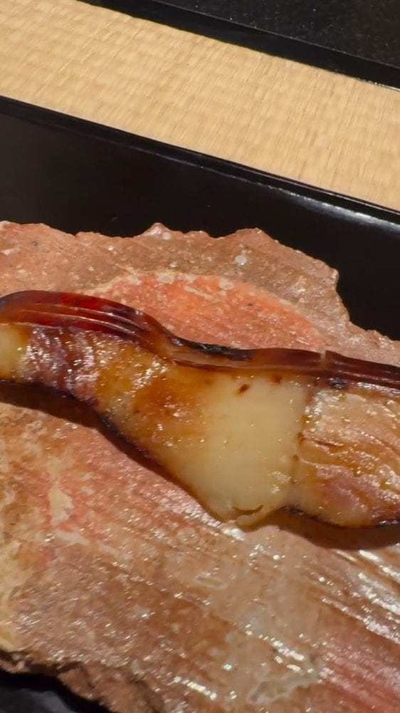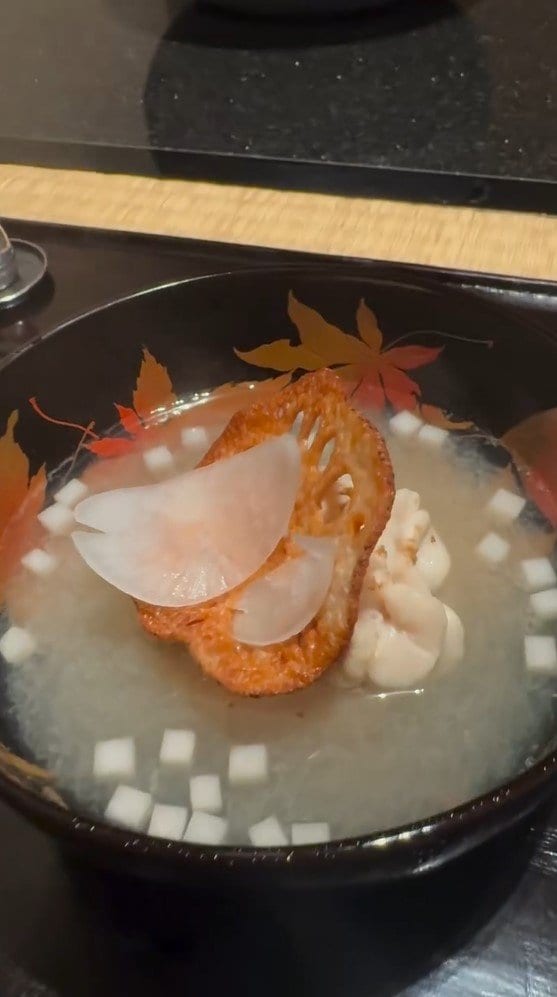 ぷりっとした白子や揚げたレンコンが入ったおみそ汁なども堪能したよう。