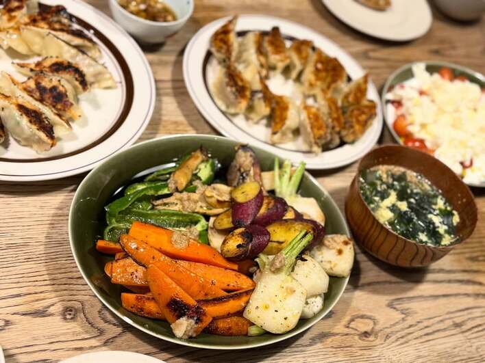 「帰って一緒にギョーザを包んで 夜ご飯はギョーザにしました」と、庄司さんと夫婦仲良く餃子を包んだことを明かし、食卓に並んだ餃子を披露しました。