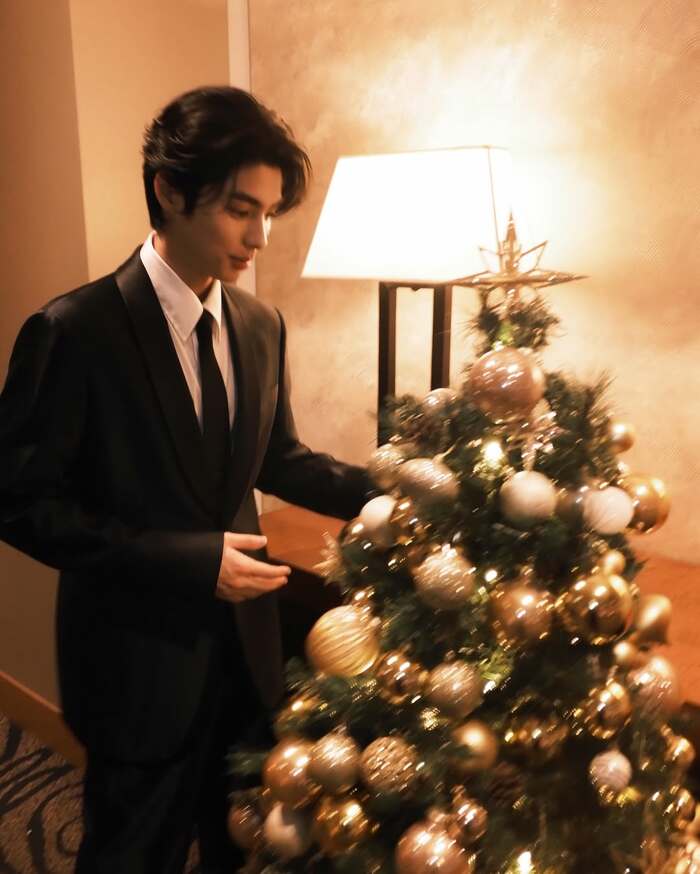 クールな表情でポーズを決めるショットや、クリスマスツリーとの華やかな写真も公開し、ファンを喜ばせました。