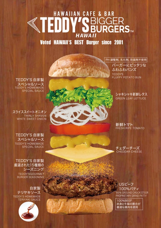 25年連続ハワイベストバーガー賞受賞の人気バーガーチェーン「Teddy's Bigger Burgers(テディーズビガーバーガー)」は、このたび、日本国内のフランチャイズ加盟金を、従来の4万ドル(約600万円)から400万円へと改定することを発表いたします。