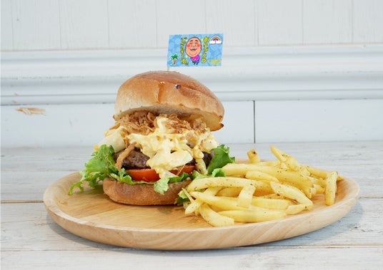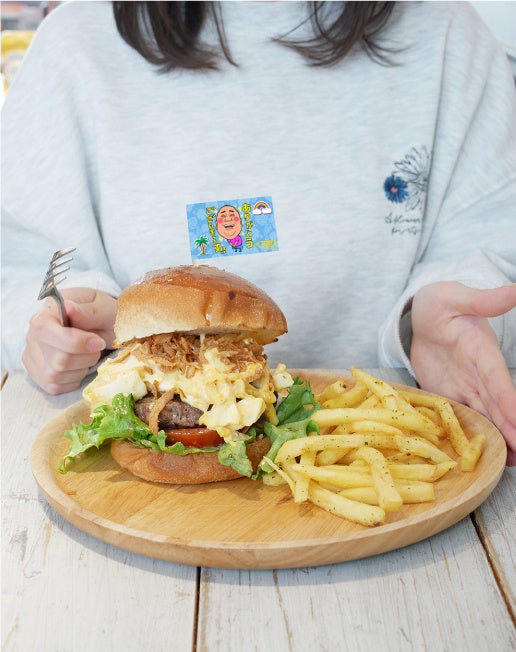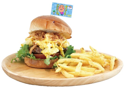 「けいちょん」こと極楽とんぼの山本圭壱さんプロデュースによるコラボ「ザ・スマッシュドエッグバーガー」は、たくあんをアクセントに効かせた自家製エッグサラダと、ジューシーに焼き上げた100%ビーフのパティの贅沢なハーモニーが楽しめる一品。