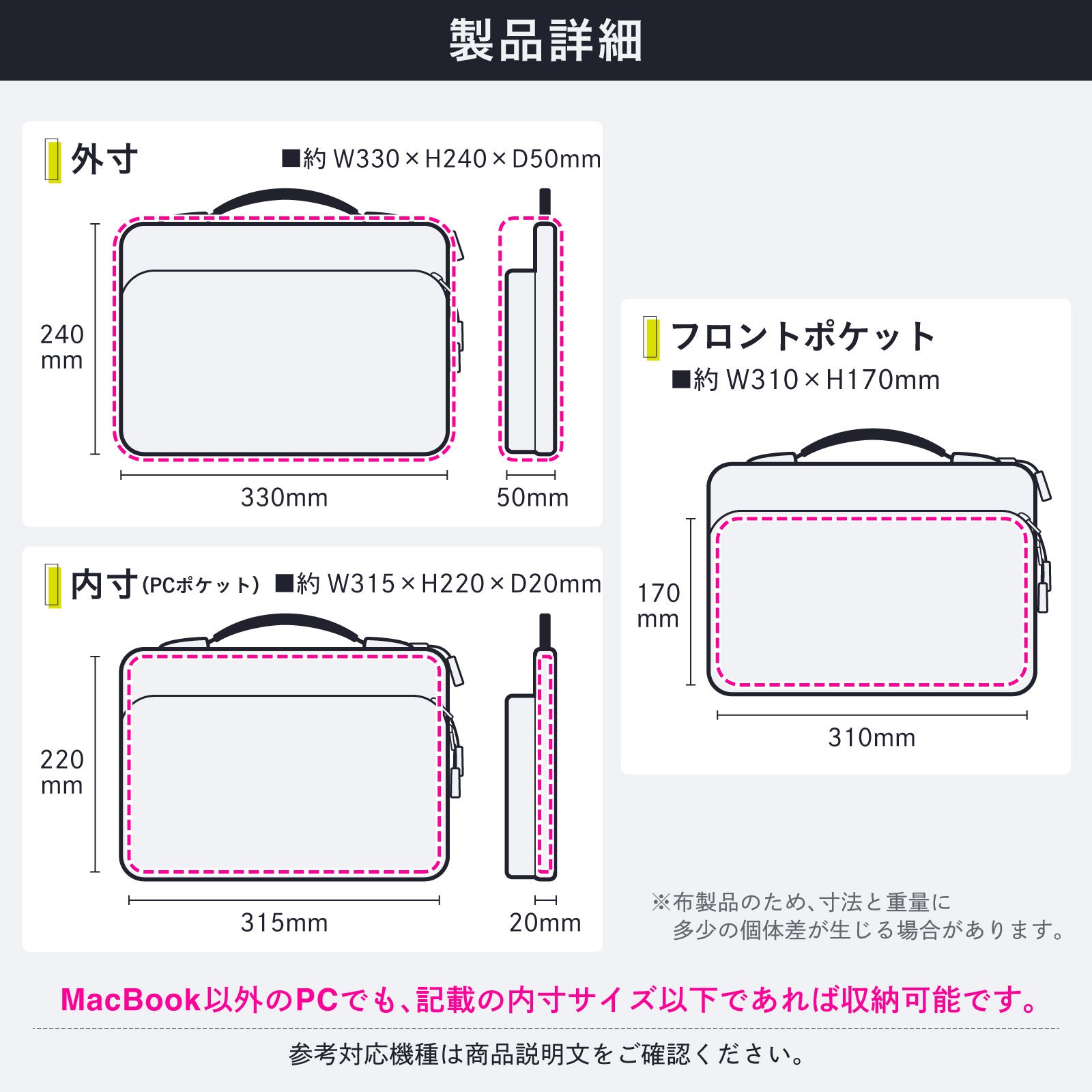 ぴったりサイズ設計:MacBook Air/Pro 13~13.6インチ(M4/M3/M2/M1)に最適化