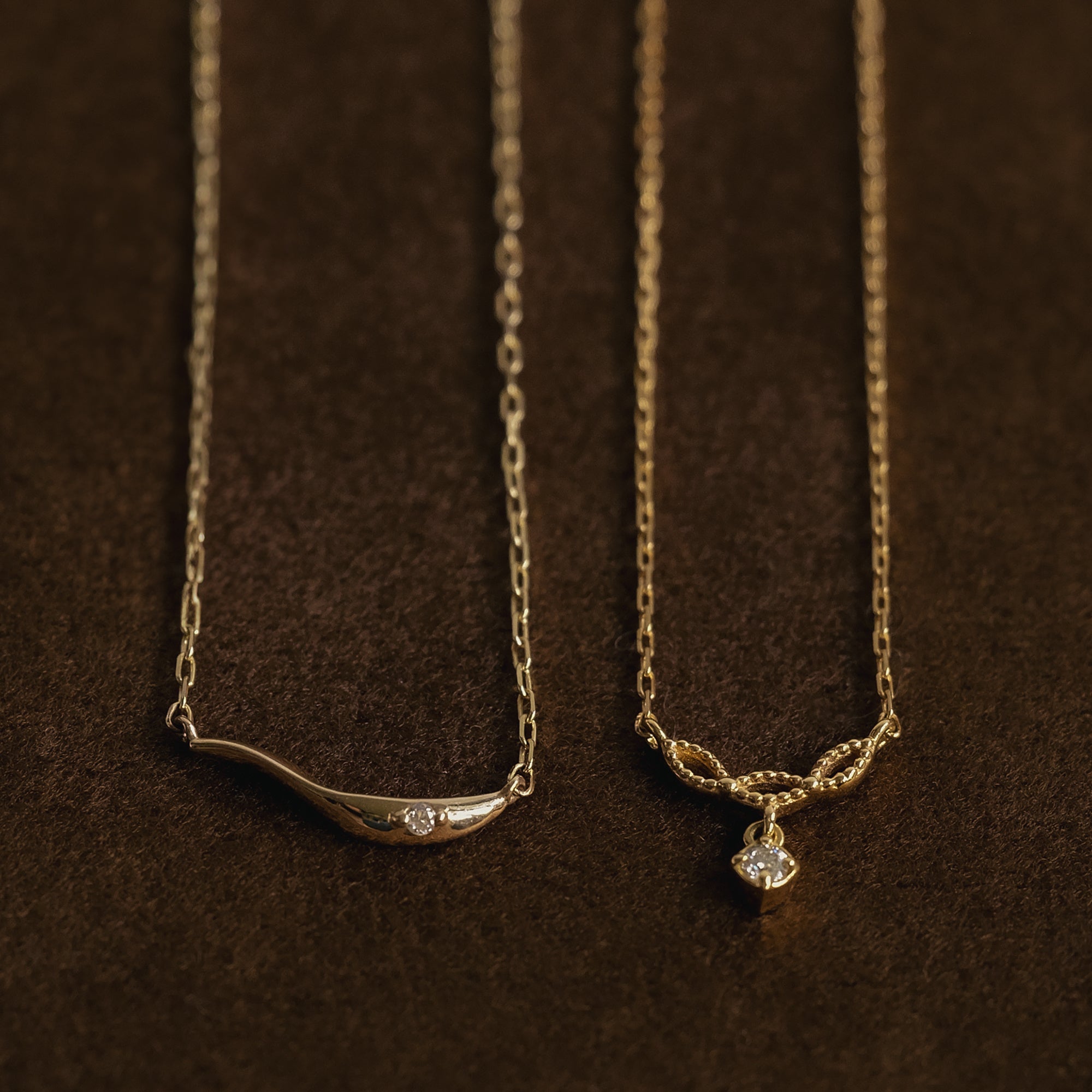 ネックレス左から¥27,500<K10YG/ダイヤモンド>¥49,500<K18YG/ダイヤモンド>※ともに2026年1月12日までの期間限定プライス