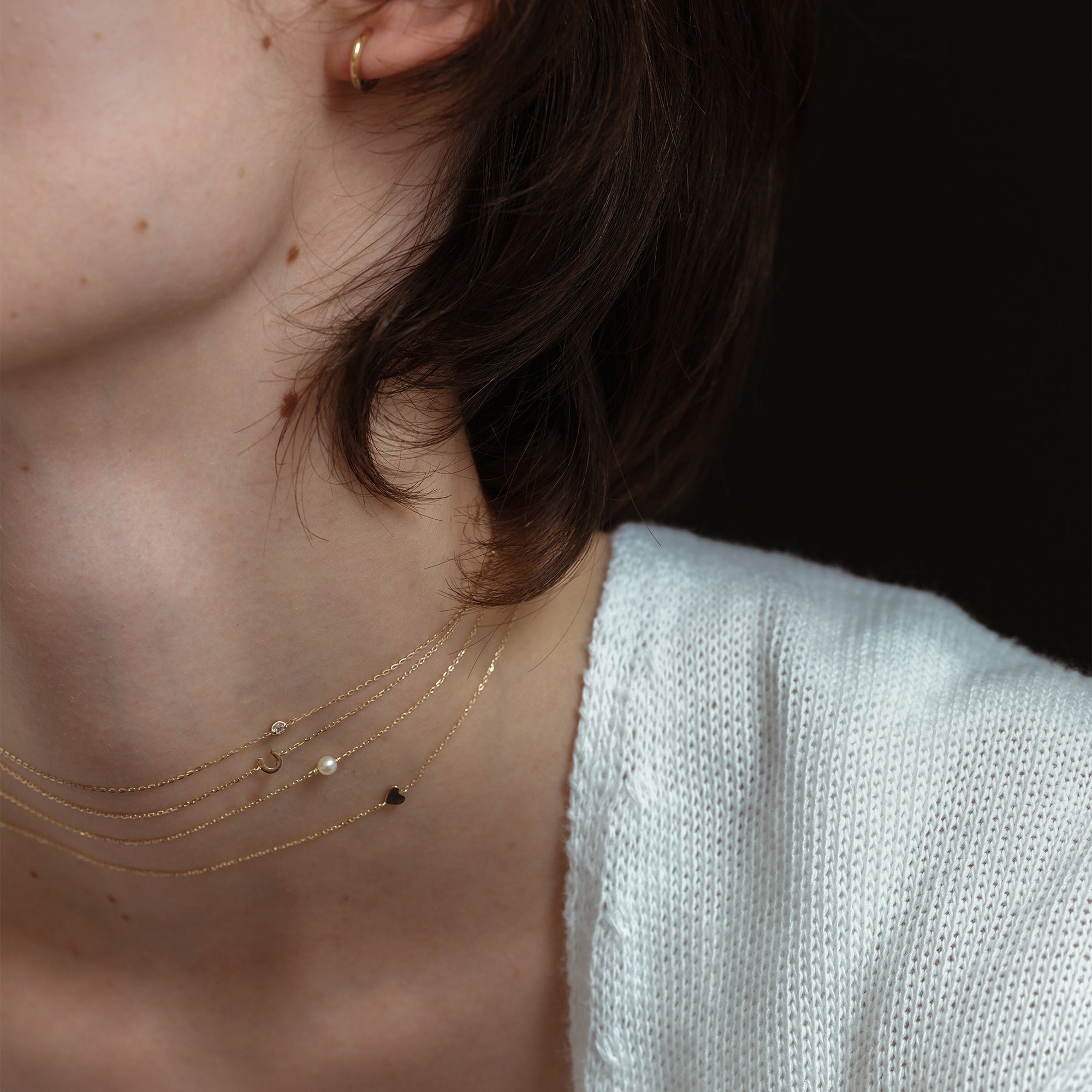 ネックレス上から¥27,500<K10YG/ダイヤモンド>※2026年1月12日までの期間限定プライス¥38,500<K18YG/ダイヤモンド0.03ct>ピアス¥52,800<K10YG>イヤーカフ¥22,000<SV925(イエローゴールドメッキ・ロジウムメッキ)>