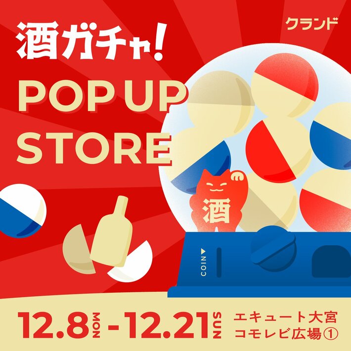 KURAND株式会社(本社:東京都足立区、代表取締役:荻原恭朗)は、弊社が運営するオンライン酒屋「クランド」のポップアップストア「オンライン酒屋「クランド」 POP UP STORE」を、2025年12月8日(月)~12月21日(日)の期間限定でエキュート大宮(埼玉県さいたま市)にて開催します。