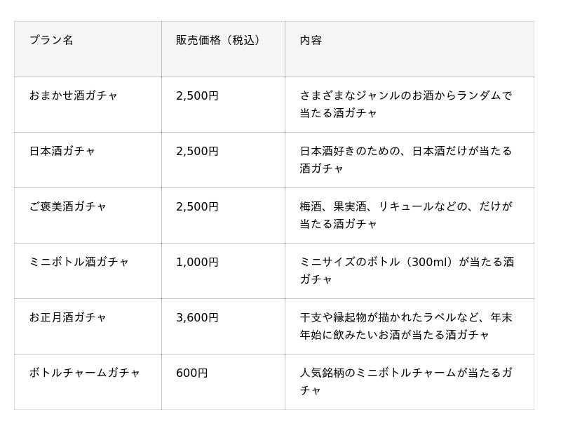「酒ガチャ」とは、「なにが当たるかわからない。だからこそ楽しめる、新たなお酒との出会い。」をコンセプトに、日本酒・梅酒・果実酒・リキュール・焼酎・ワイン・プレミアムサワーベースなど、500種類を超えるお酒の中から、ランダムにお酒をお届けするクランドの人気サービスです。2019年に誕生し、コロナ禍の家飲み需要をきっかけにSNSを中心に話題となりました。