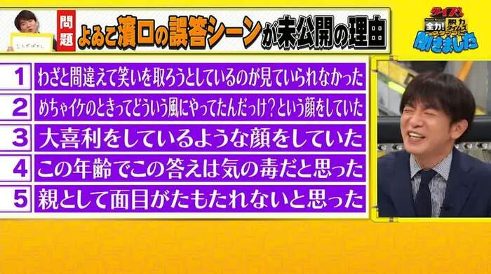 「わざと間違えて…」という正解を見た濱口さんは、痛いところをつかれたように「これ、一番恥ずかしいんですよ」と苦笑いしました。