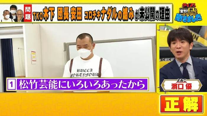 濱口さんの「当たっててほしくないねんけどな」という言葉もむなしく、「松竹芸能にいろいろあったから」が正解。