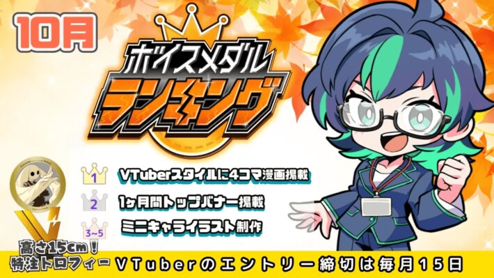 NTTドコモグループ※1の新規事業創出プログラム「docomo STARTUP(TM)」を通じてスピンアウト※2した株式会社CrossVision(以下、クロスビジョン)は、同社のサービスV-tamp(ブイタンプ)において、10月度の3Dボイスメダル販売数が最も多かったVTuberの「ボイスメダルMVPランキング」を発表いたします。