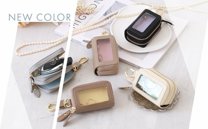 スマートキーを取り出さずに操作できるクリア窓、落下防止チェーン、360度回転フック、2タイプの容量設計など、「使いやすさ」と「安全性」を徹底的に追求しています。
