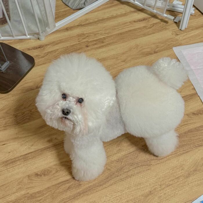 とある家庭に暮らすトイプードルの「しらす」は真っ白でふわふわな毛並みが特徴で、まるでぬいぐるみのようなワンちゃん。そんな「しらす」の頭が、ある日大変なことに!その瞬間を捉えた写真がSNSで話題になっています。