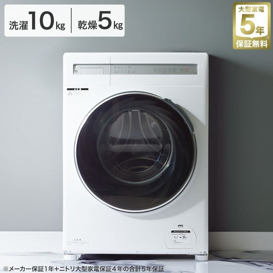10万円を切る価格で洗濯容量10kg/乾燥容量5kgの本格的なスペック、かつサイズがコンパクトなこれまでにないドラム式洗濯乾燥機です。縦型洗濯機(※1)よりもコンパクトなサイズで、「置けない」を解決。さらに、忙しい方に便利な60分の「特急洗乾コース」を搭載し、洗濯から乾燥までをスピーディーに完了できます。加えて、乾燥フィルターは毎回自動で洗浄されるため、お手入れも簡単です。