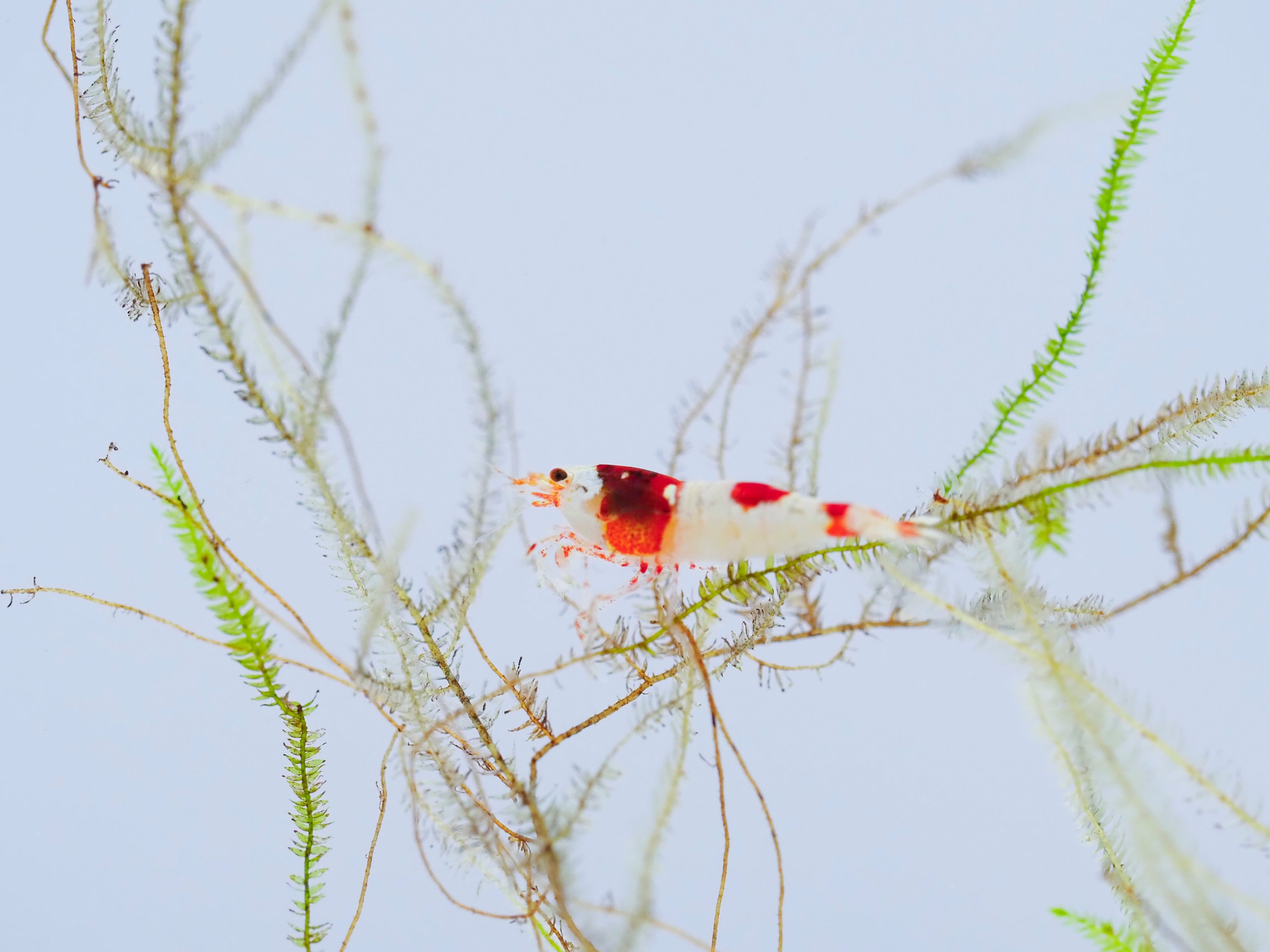 『うみがたり』の入口に、クリスマスカラーを身にまとった「レッドビーシュリンプ」を展示します。