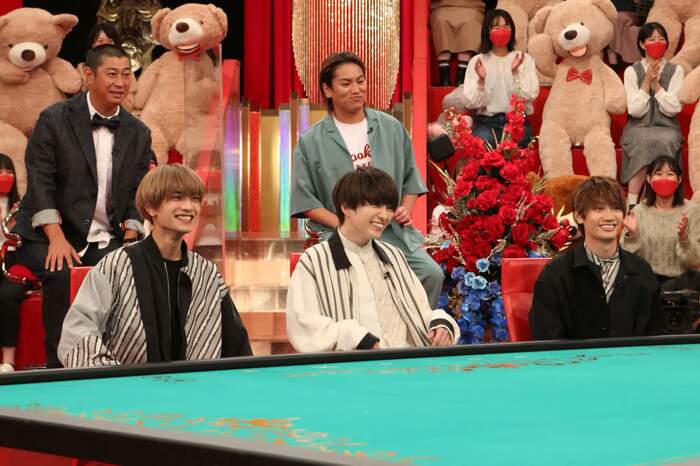 西畑:結構、事前に打ち合わせをしましたね。ドッキリのロケのときも、今日の収録も「どうだましていこうか?」っていう。でも、本番で有吉さんの質問がどう飛んでくるかわからないので、その場に応じて、臨機応変に頭を回転させながら挑みました。