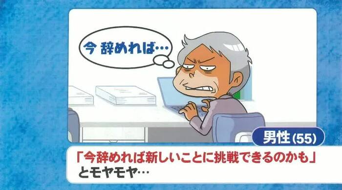 紹介されたのは、「定年まであと5年で減給&部下に使われる立場になり、このまま我慢するべきか、退職するべきか悩んでいる」という55歳男性のエピソードだ。
