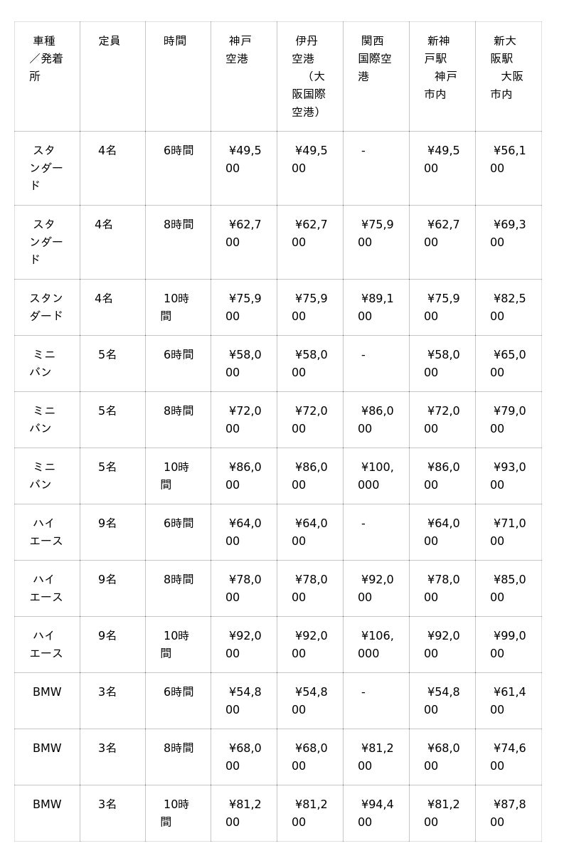 ※関西国際空港・伊丹空港への配車には、駐車場代金が別途必要になります
