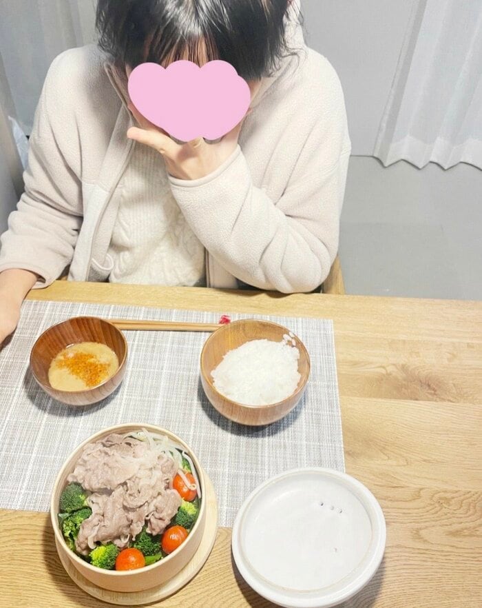 投稿された写真に写るのは、豚肉とせいろ蒸しをメインとした美味しそうな食卓。