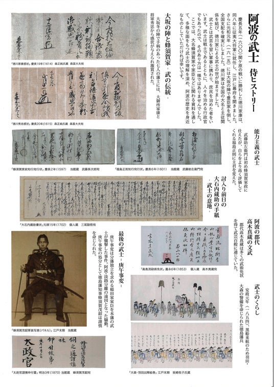 ここでは、大名蜂須賀家や家臣などに関わる資料を通して、多様な面をもつ武士の理解を深め、阿波の歴史を身近なものとしていただければ幸いです。