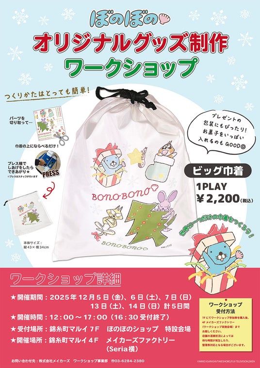 12/14(日)10:30~ 7Fぼのぼのショップにて販売します。