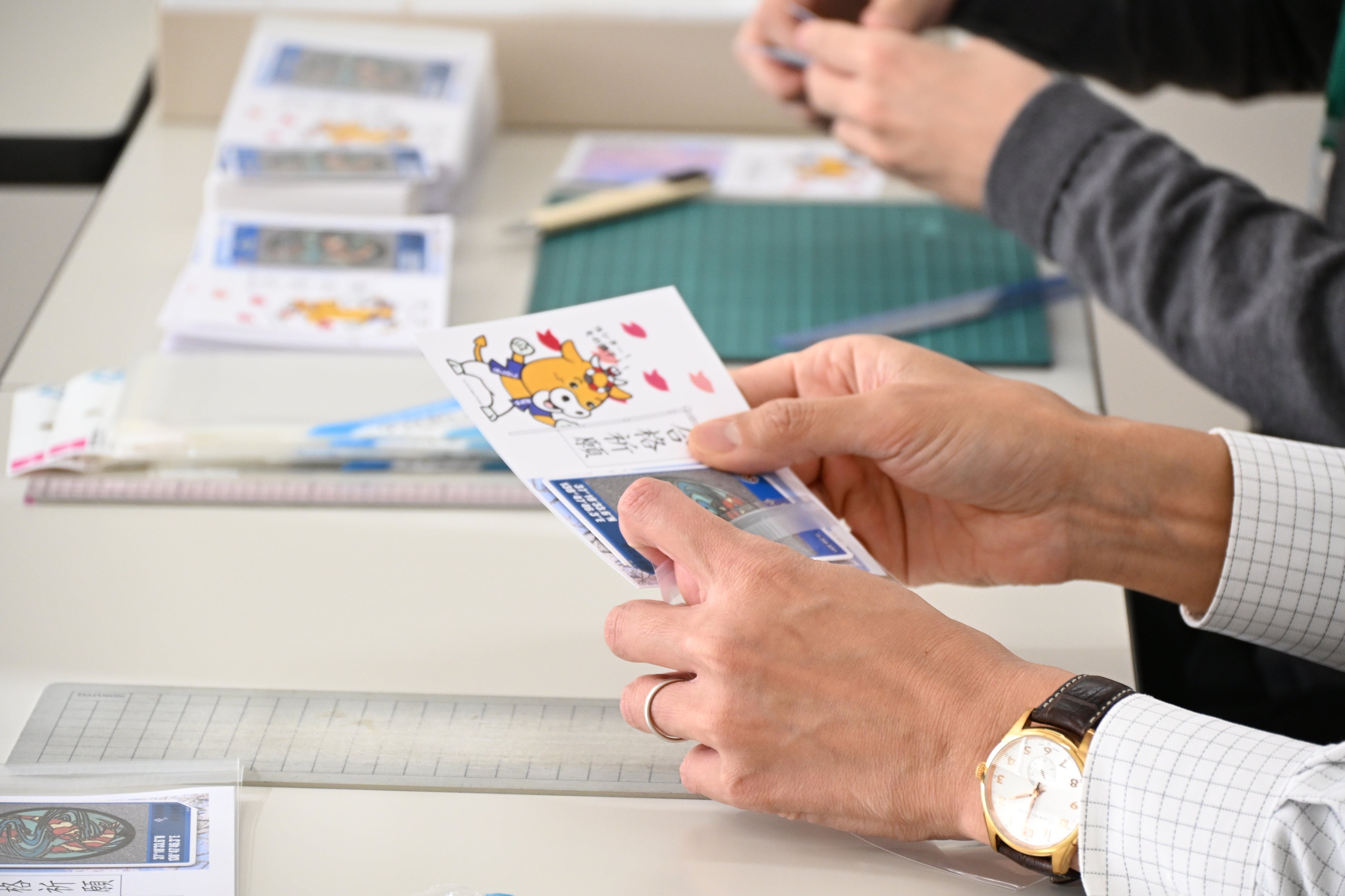職員がカードのセットを作成している様子