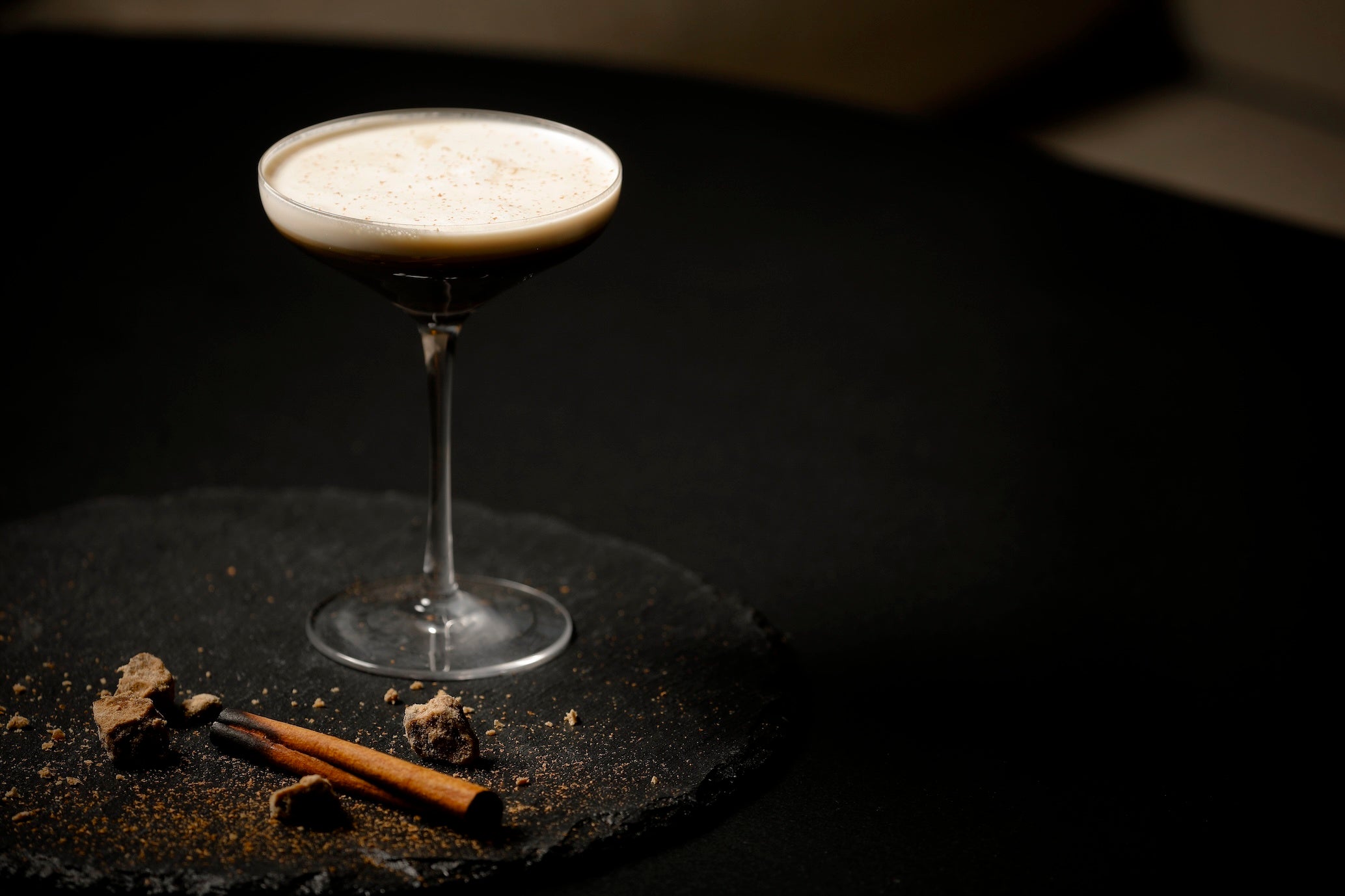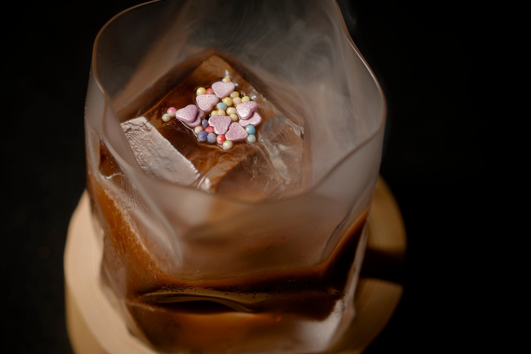 静寂に包まれる「山麓の冬の夜」をモチーフにしたシックな佇まいのカクテル2種をご提供します。ピート香が効いたウイスキーを用いたアイリッシュコーヒーに、燻らせたシナモンと黒糖の香りをそっとまとわせた「ROKUアイリッシュコーヒー」、そして紅茶とダークラム、チョコレートの風味を重ねた「ミッドナイトソナタ」は、烏龍茶と米をスモークし、豊かな薫香を添えてお届けします。蓋を開けるとグラスの中から煙がふわりと立ち上り、幻想的な光景が広がります。