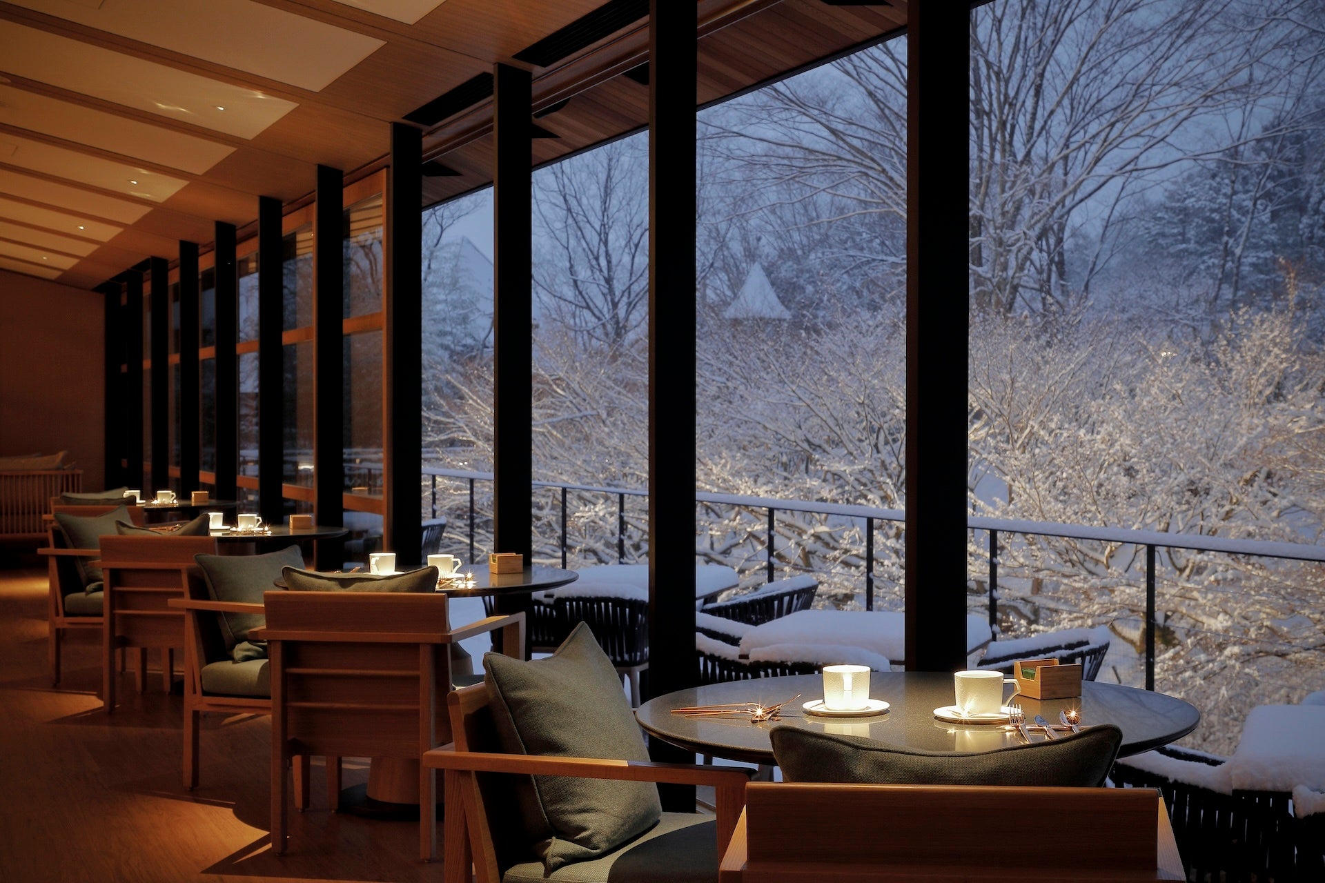 「TENJIN」オールデイダイニングでは、白銀の森をロマンティックに描いた「冬アフタヌーンティー -白銀-」が登場します。雪がふわりと降り積もった山麓をイメージし、雪の結晶を添えた「アールグレイブラウニー」や「ショートケーキ ババ」のほか、苺、フランボワーズ、京都・水尾産ゆずなど、季節の味覚や地元食材で仕立てたメニューをお愉しみいただけます。また、菊芋や帆立貝など冬に旬を迎える食材を使った限定メニューもご用意いたします。