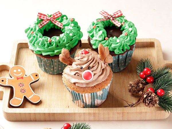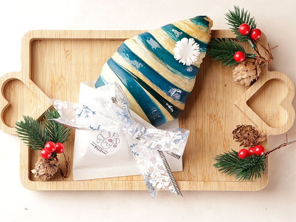 一番人気のリボンクロワッサンからは、鮮やかな緑と赤のスペシャルバージョン、その他、雪だるまやツリーを模ったお惣菜パン、クリスマスデコレーションのカップケーキやクッキー、サンタクロースを模したホールケーキなど、この時期だけの華やかなデザインのメニューをご用意しております。