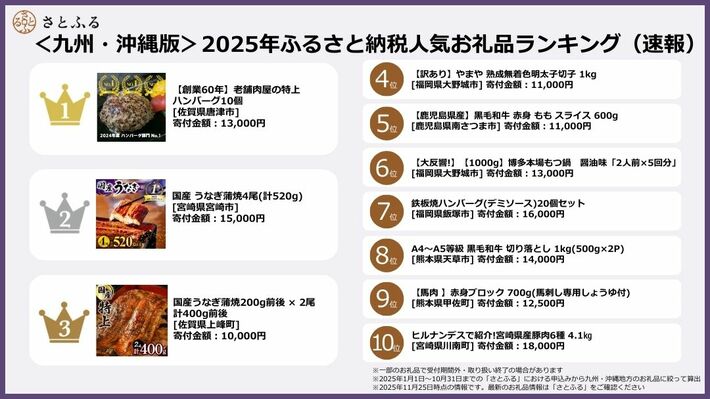 ※1 2025年1月1日~10月31日までの「さとふる」における申込みから、九州・沖縄地方のお礼品に絞って算出
