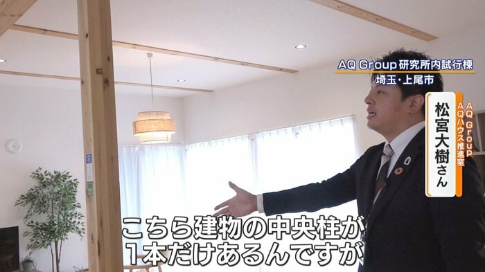 建物の中央に柱が1本だけあるのですが、この状態で耐震等級、最高等級を実現しております。