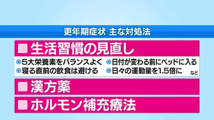 病院では、更年期の症状を改善させるために、以下のような対応をしてくれるそうです。