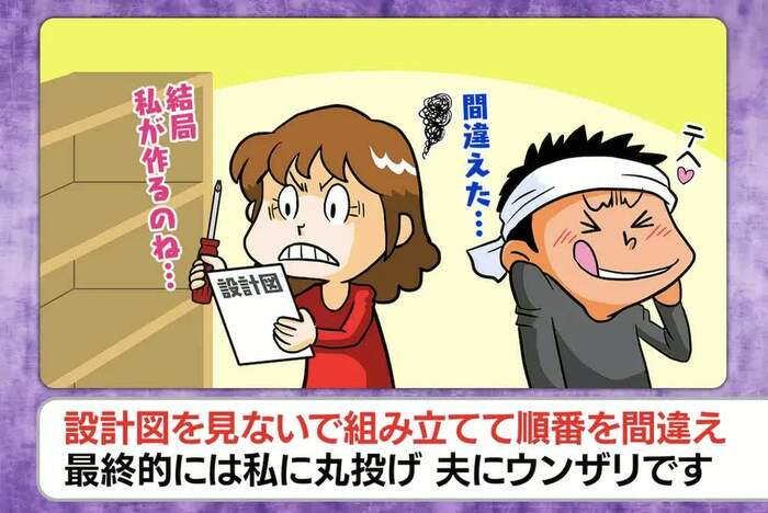 「設計図を見ずに食器棚を組み立てる夫にモヤモヤする?」という調査の結果は、