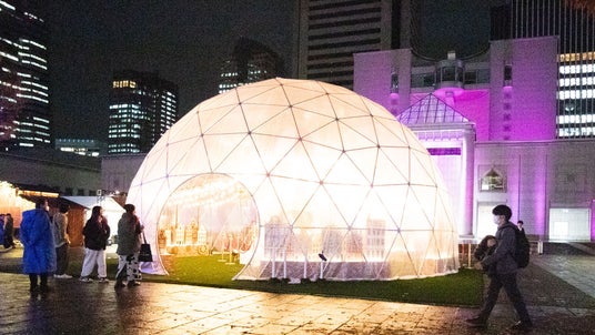 会場中央にある、直径10m、高さ6mの「SNOW DOME(スノードーム)」がみなとみらいChristmas Market 2025のシンボルとなっています。ぜひ中に入って、お楽しみください。