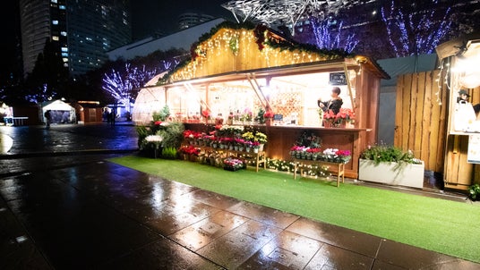 会場内のヒュッテでは、クリスマスならではのフードやドリンク、雑貨等を販売いたします。またお食事が出来るスペースもご用意しておりますので、ヨコハマミライトのイルミネーションとともにゆっくりとお楽しみください。