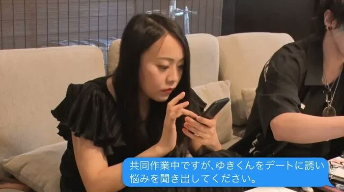 指令:「共同作業の途中ですが、ゆきくんをデートに誘い、悩みを聞き出してください」