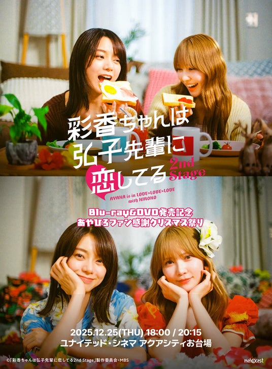 加藤史帆×森カンナW主演のガールズラブコメディ『彩香ちゃんは弘子先輩に恋してる 2nd Stage』のBlu-ray&DVDの発売を記念して、あやひろファン感謝クリスマス祭りを行うことが決定した。