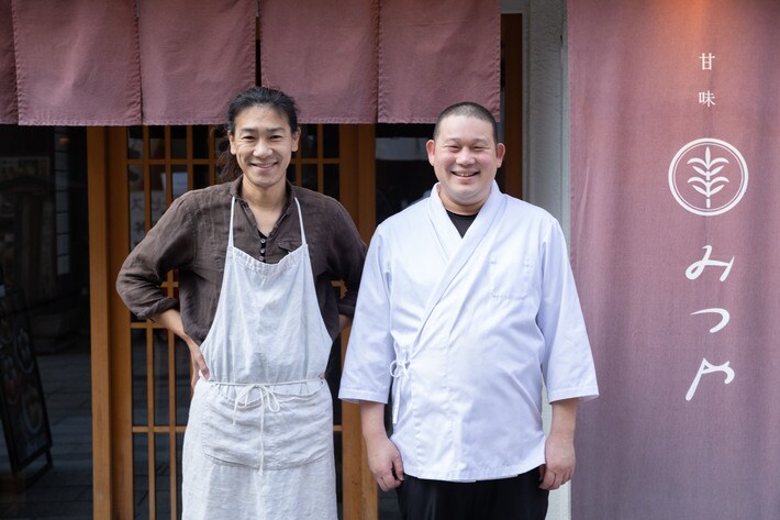 左:annorum(アンノルム)店主の田中貴之(弟)、右:甘味みつや店主の田中瑛司(兄)