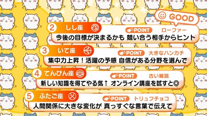 『めざましテレビ』で放送中の「ちいかわ占い」 テレビ放送がない日はお休みで、月~土:朝7時以降に更新予定です。