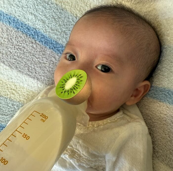 一方でキウイコーデの弟くんはというと、「ふしぎポーズと表情とくい」と思わず笑顔にしてくれる場面が多いよう。「おっぱいでやはりブチ切れて 顔真っ赤になっちゃう」と、お兄ちゃんとは違い、双子で個性がはっきり分かれていますね。