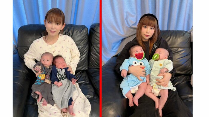 また、投稿ではそれぞれ顔の一部がスタンプで隠された、新たな双子ショットを公開しています。