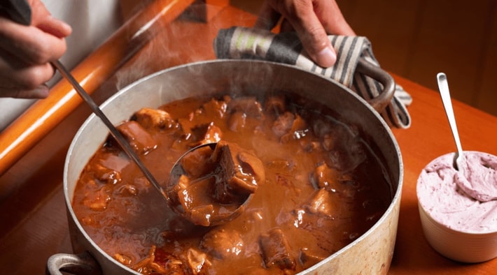 当館の代名詞である約150種類の豪華ブッフェが、この冬、さらに進化を遂げます。厳しい寒さの中でこそ旨味を凝縮させる北の大地の旬の食材を惜しみなく使用し、心も体も温まる献立をご提供いたします。ワゴンサービスで大好評のじっくりと時間をかけて煮込み、深いコクと柔らかさを追求したビーフシチューは緑の風の名物!ぜひ温かいうちにお召し上がりください。