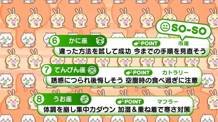 『めざましテレビ』で放送中の「ちいかわ占い」 テレビ放送がない日はお休みで、月~土:朝7時以降に更新予定です。