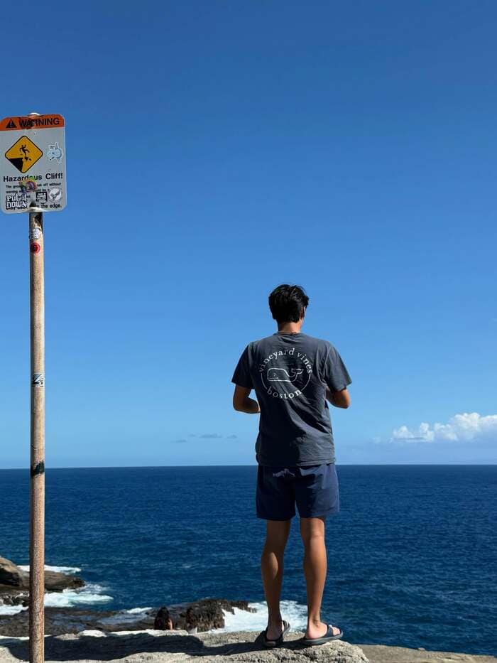 写真を見ると、海の近くに立つ、スラッと背が伸びた次男の姿が収められています。