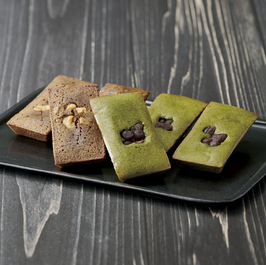 「抹茶」と「ほうじ茶」の2種をご用意。それぞれ焼き菓子用にブレンドした抹茶・ほうじ茶と発酵バターを使用し、大納言小豆とくるみを添えてしっとり焼き上げました。