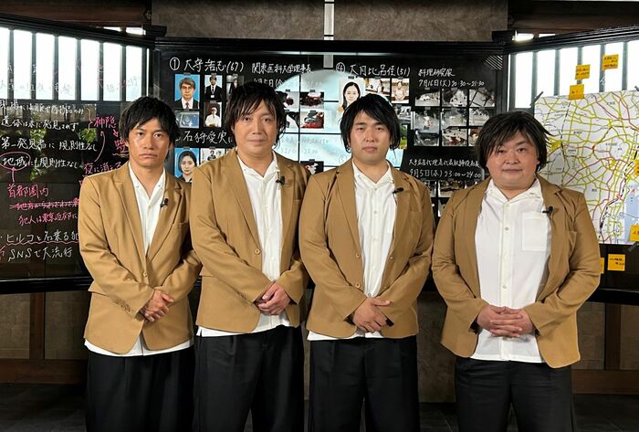 藤原竜也軍団の、ペレ草田さん、矢野ともゆき。(NOモーション)さん、島山ノブヨシさん、高井圭佑(ガーリィレコード)さんの芸人4人が、藤原さん演じる興玉の装いで、「全決」のセットへ潜入し、本作の第1話特別鑑賞会を実施。この模様は、フジテレビ公式YouTubeで、期間限定で配信されます。