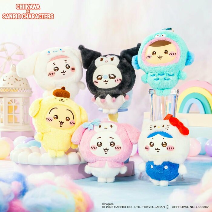 マイメロディのフードをかぶってにっこりするちいかわなど、その愛らしい姿はファン必見のかわいさ!お気に入りの子をぜひゲットしてみてくださいね。