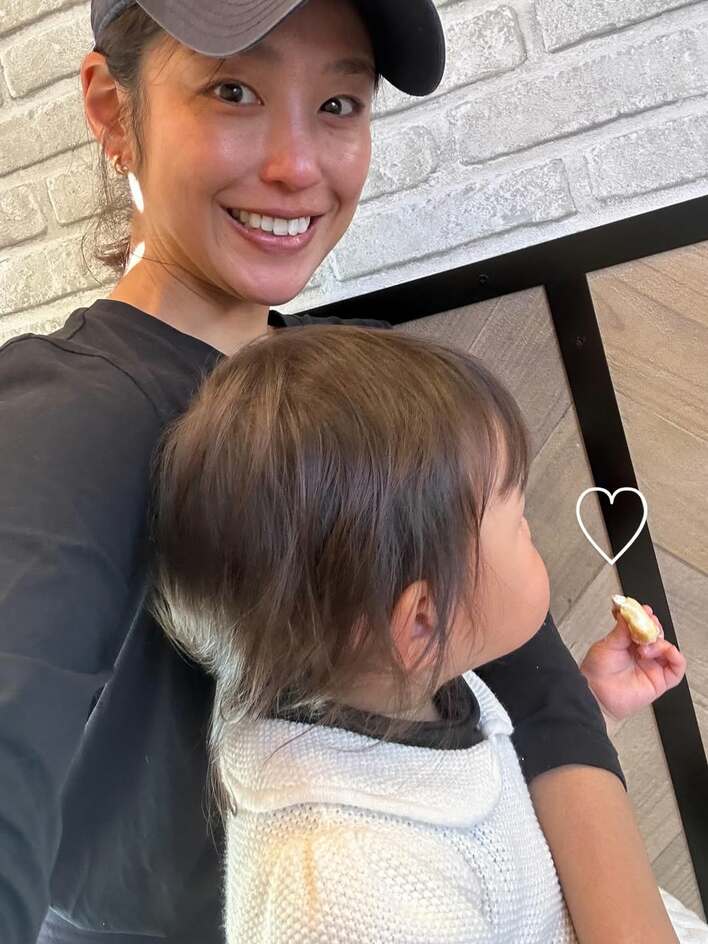 さらに、投稿文で「今日はミスドデビューしました」とづつった岡副さんは、娘がドーナツをもぐもぐと食べているショットも披露!「おいしすぎたよね、そりゃあおいしいよね笑 すごくいい反応してくれました」と続け、娘が生まれて初めて食べたドーナツのおいしさに夢中になっていたことを明かしました。