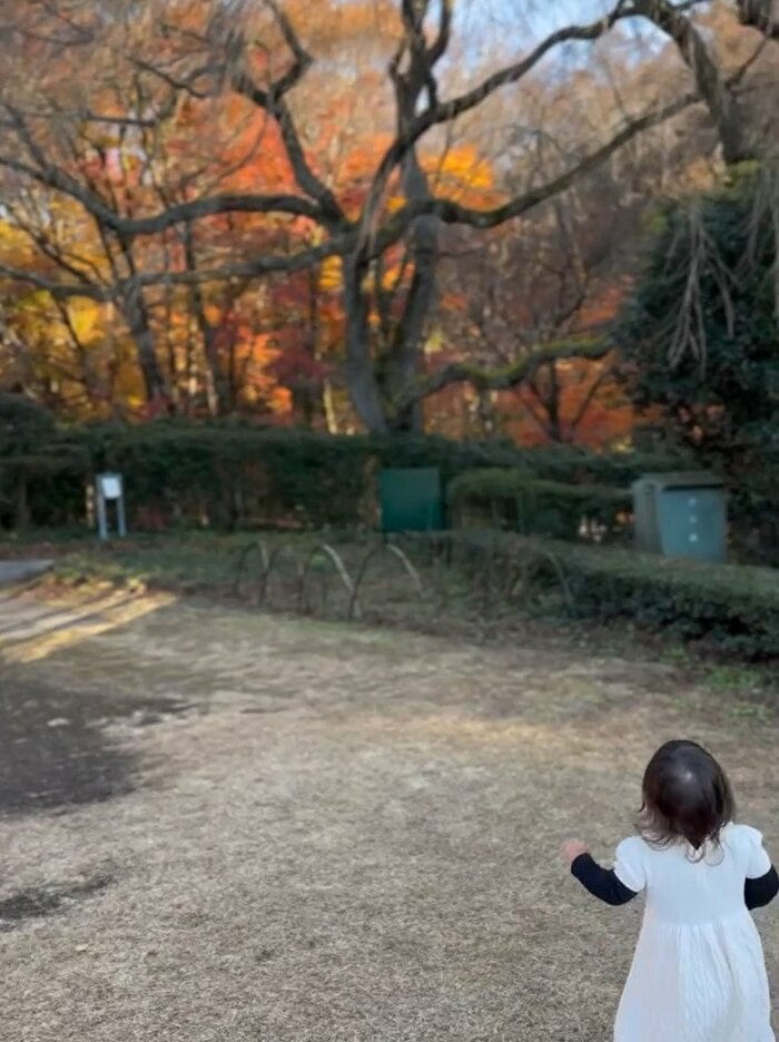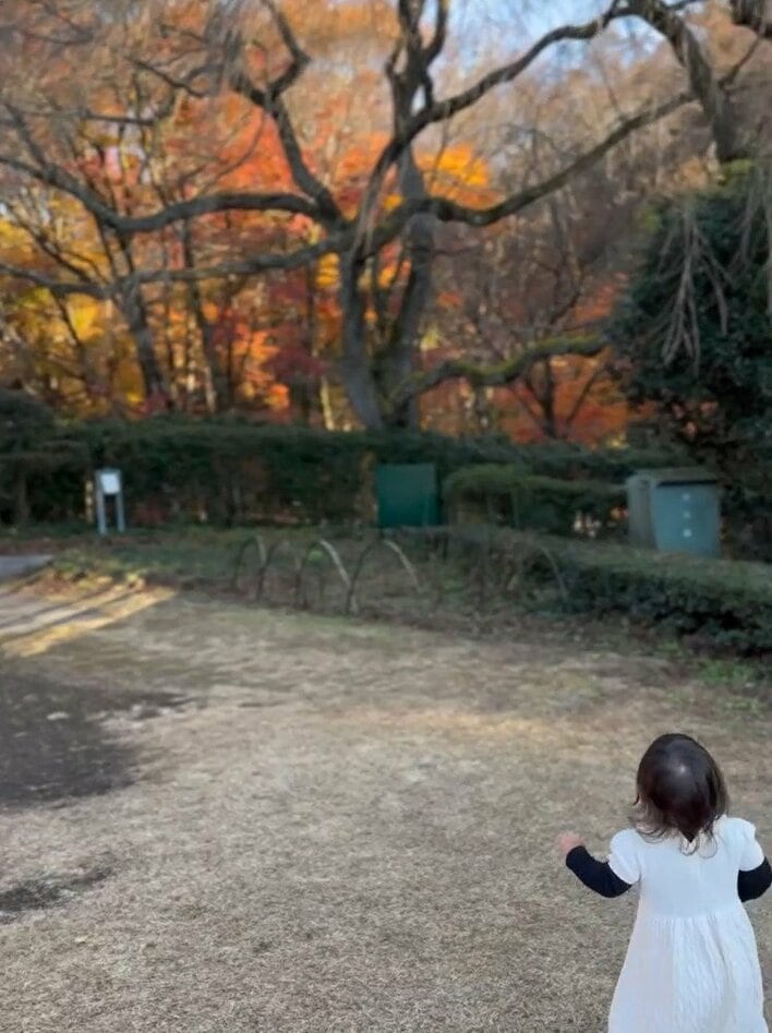 そんな岡副さんは、今回の投稿で「紅葉狩り」とつづり、1歳の娘とお出かけした際のショットを公開。